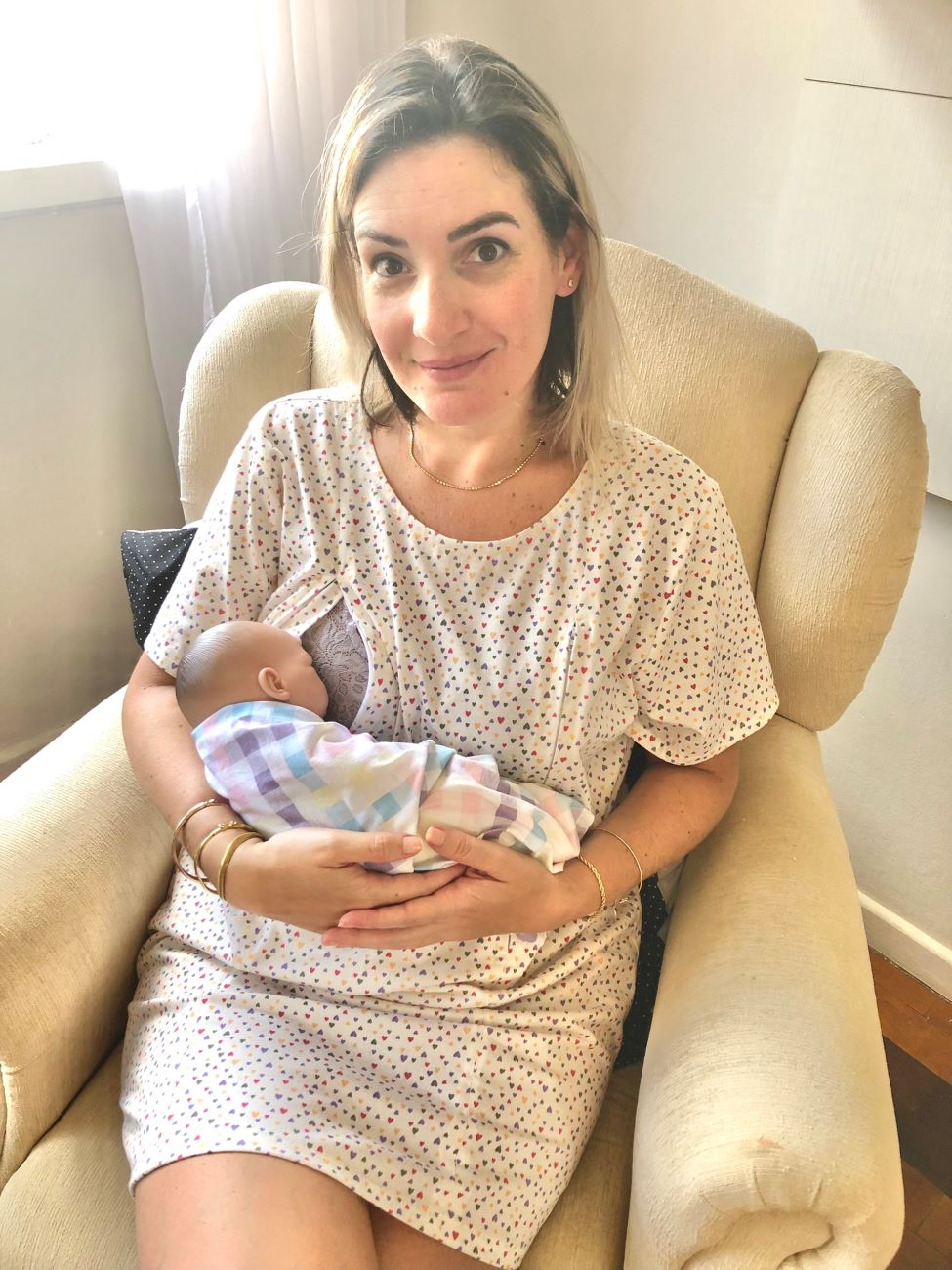 Bem-estar, conforto e aconchego com a camisola de amamentação. Abertura nas duas mamas com zíper. O zíper é forrado para proteger as mamas. Em malha 100% algodão. Facilidade e praticidade para a amamentação, aconchego para o bebê e beleza para as mamães.