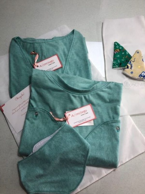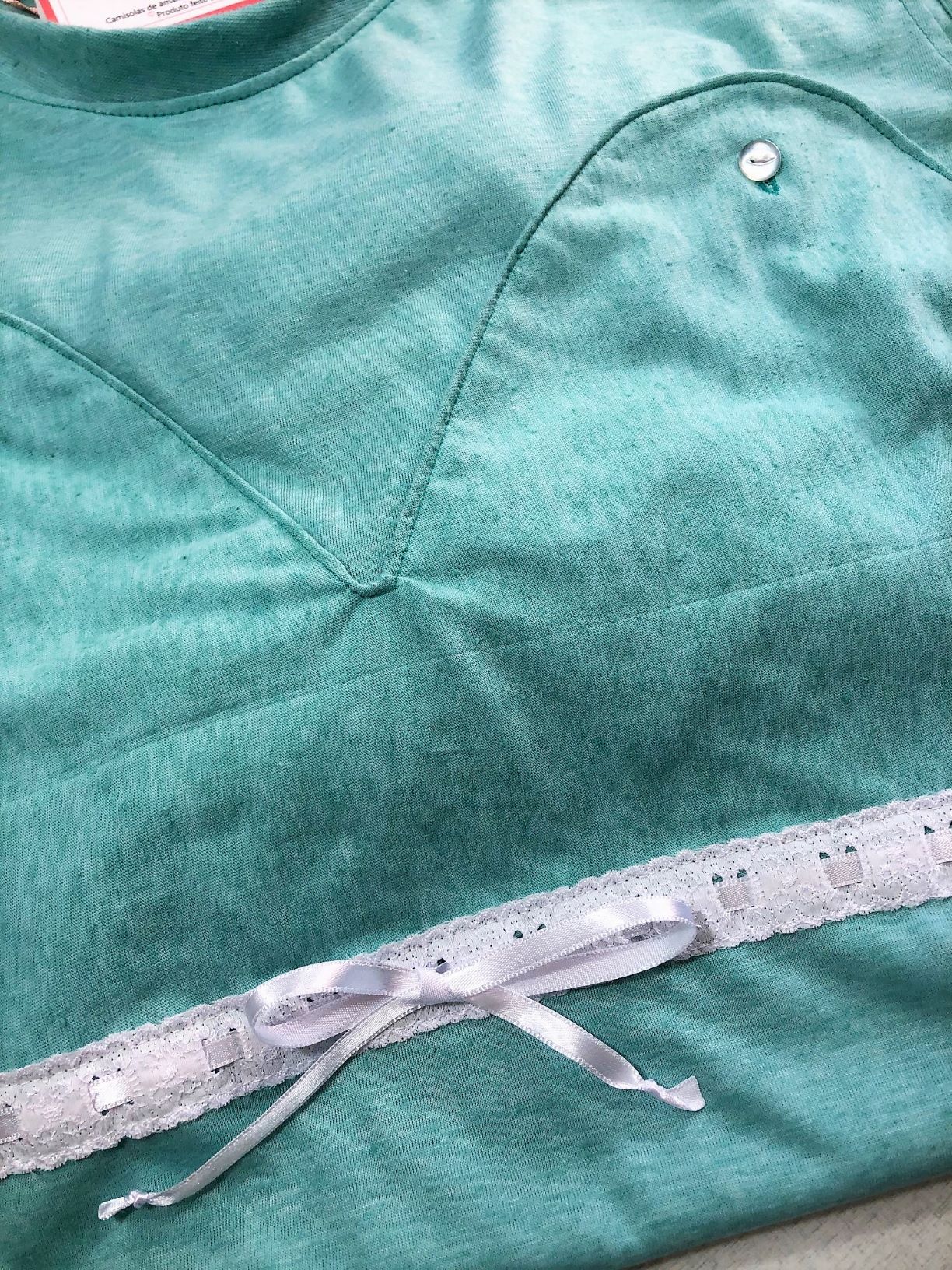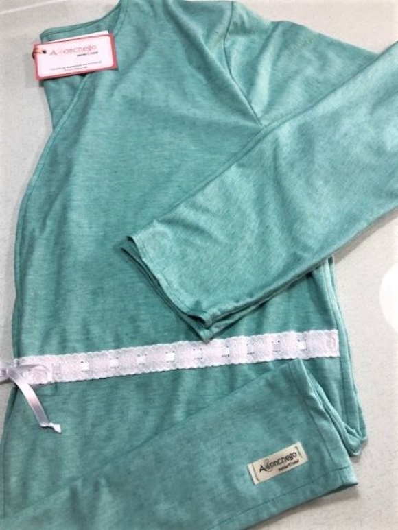 Camisola para amamentação confeccionada em malha 100% algodão, hipoalergênica. Com abertura especial no peito, fechamento com um prático botão e uma leve sustentação logo abaixo do peito ajustada pela própria mamãe. Confortável, prática e veste muito bem as mamães. Acompanha casaqueto manga longa ou 3/4.