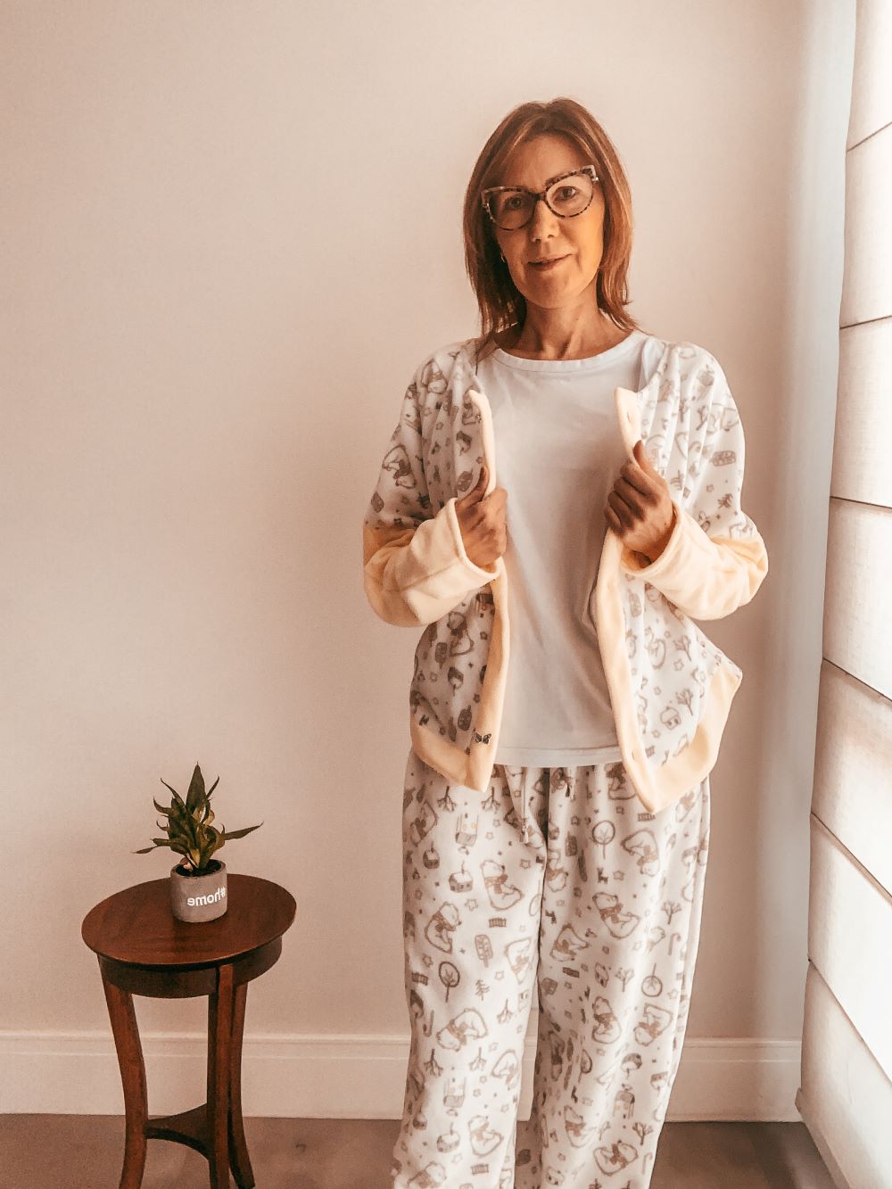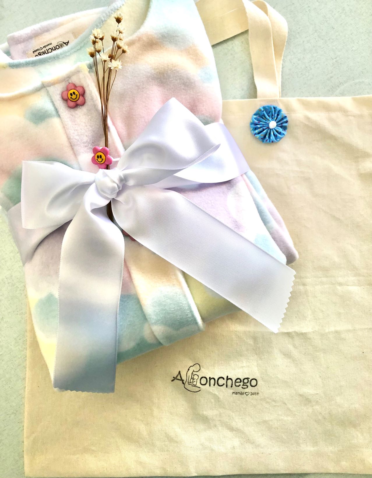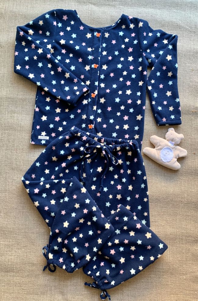 Conjunto em soft (o melhor soft, que não cria bolinha e é macio como a pele do bebê) – calça com elástico macio e cordão para ajuste na cintura, casaco manga longa com botões (fofos e diferentes) e camiseta de amamentação em malha 100% algodão, modelo com zíper, podendo ser manga curta ou longa.