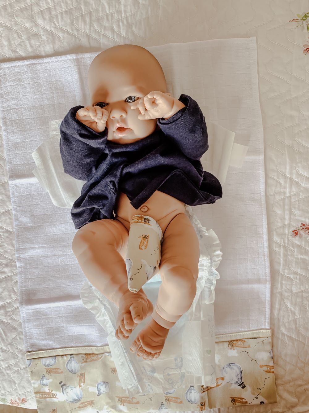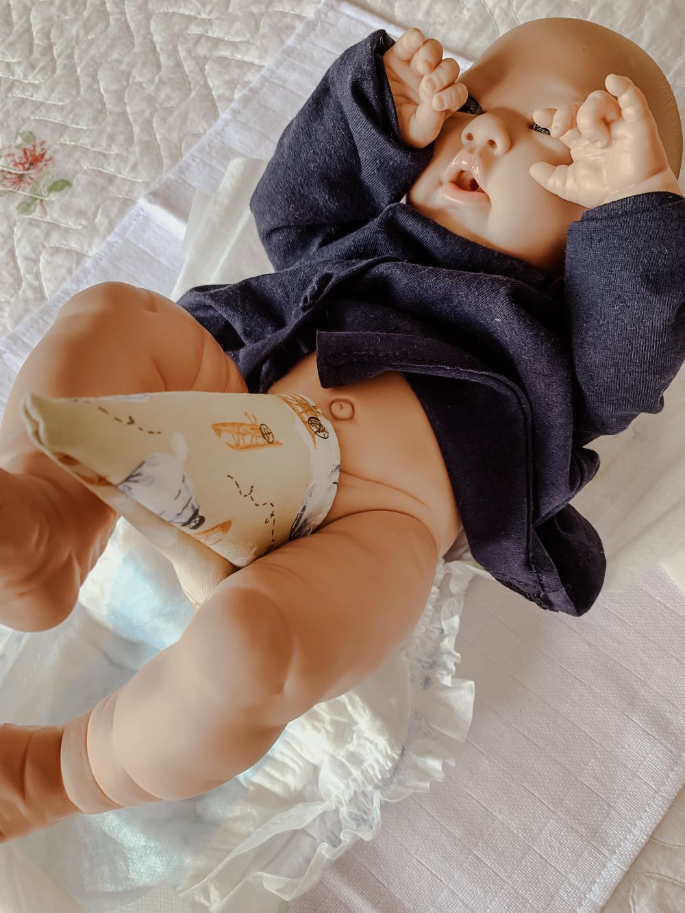 É feito em tricoline 100% algodão, interior atoalhado para absorver o pipi. Pode ser lavado em máquina.