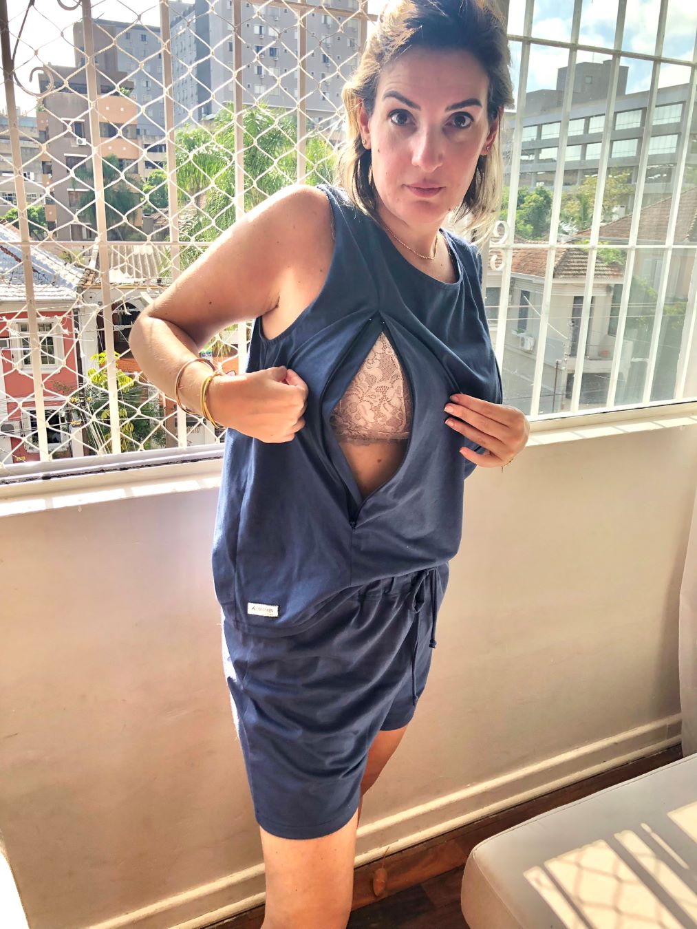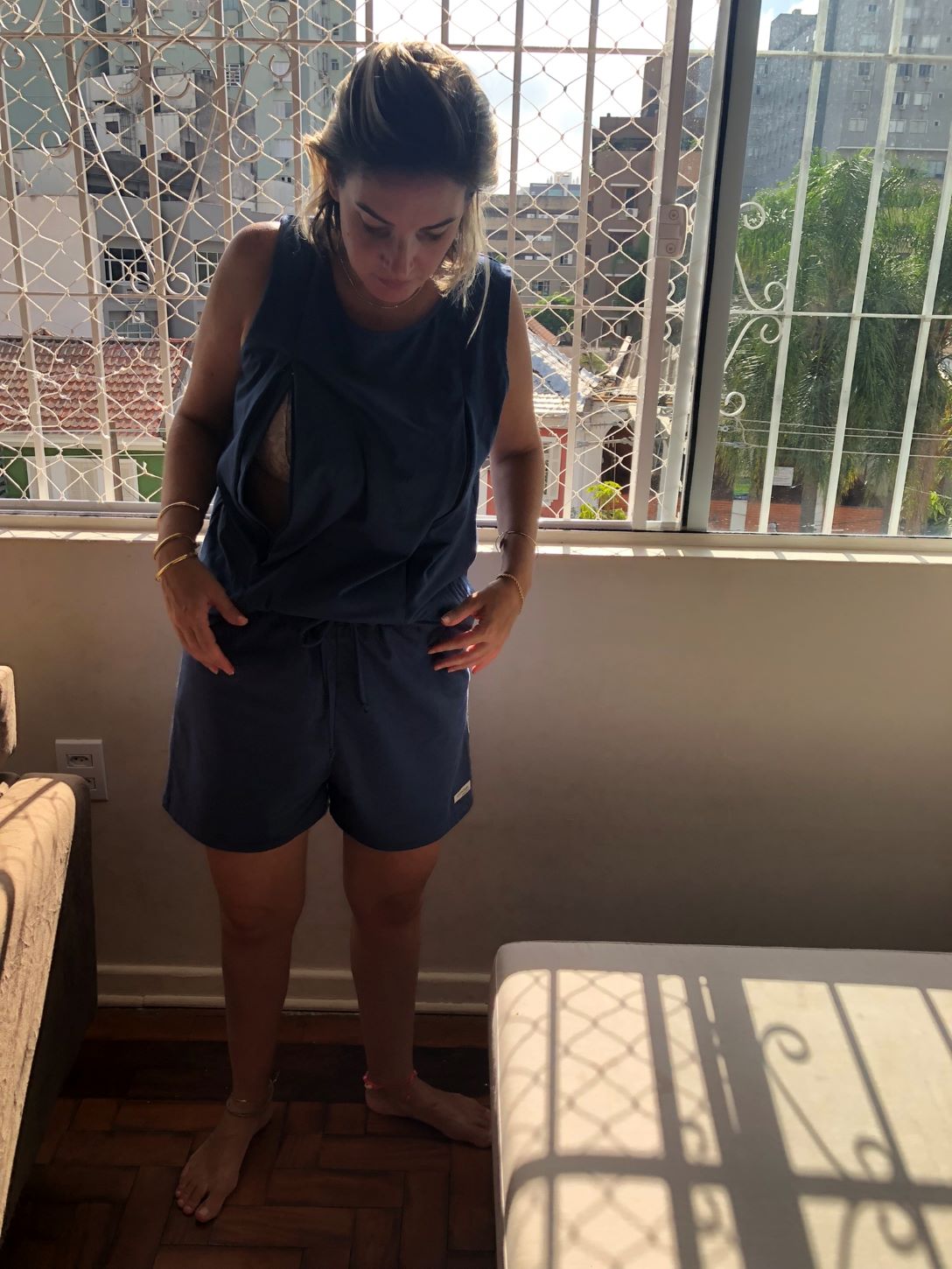 Todo o aconchego para a mãe amamentar. Pijama de amamentação em malha 100% algodão. Camiseta de amamentação com abertura em zíper, forrado, nas duas mamas. Camiseta regata. Short em malha 100% algodão, cintura com elástico macio e cordão em malha para ajustar na cintura. Hipoalergênico, confortável, mantém a sensação térmica do corpo, seguro e prático, com fácil acesso para amamentar.